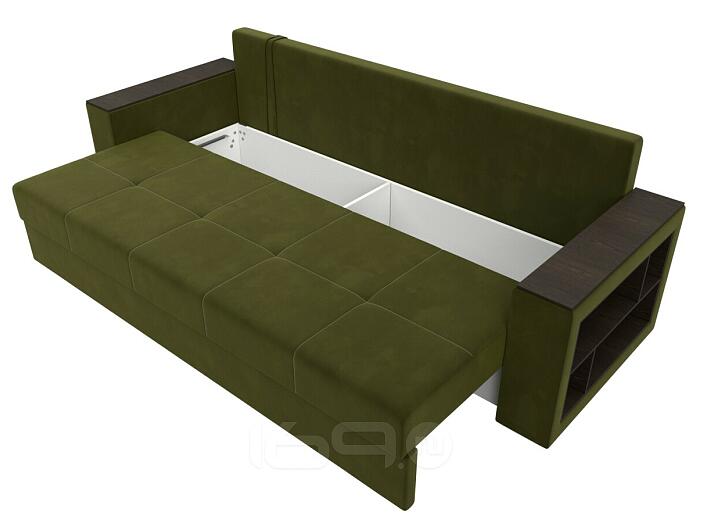 Диван прямой дубай лайт полки справа микровельвет зелёный еврокнижка