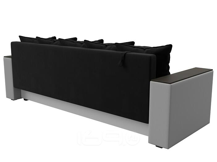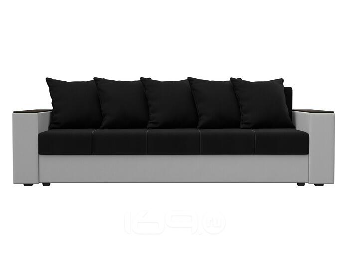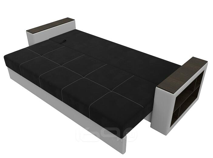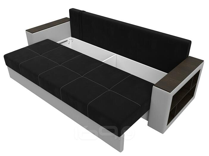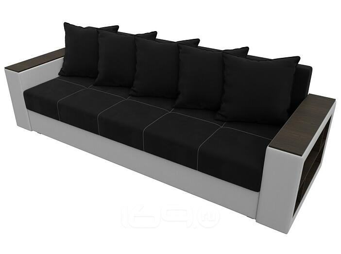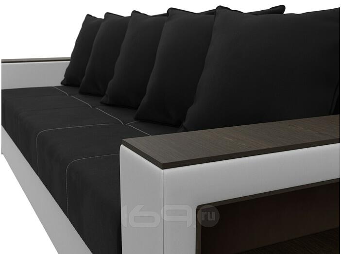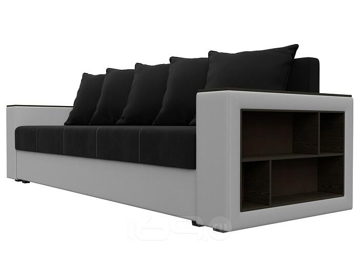 Диван прямой дубай лайт полки справа микровельвет/экокожа чёрный/белый еврокнижка