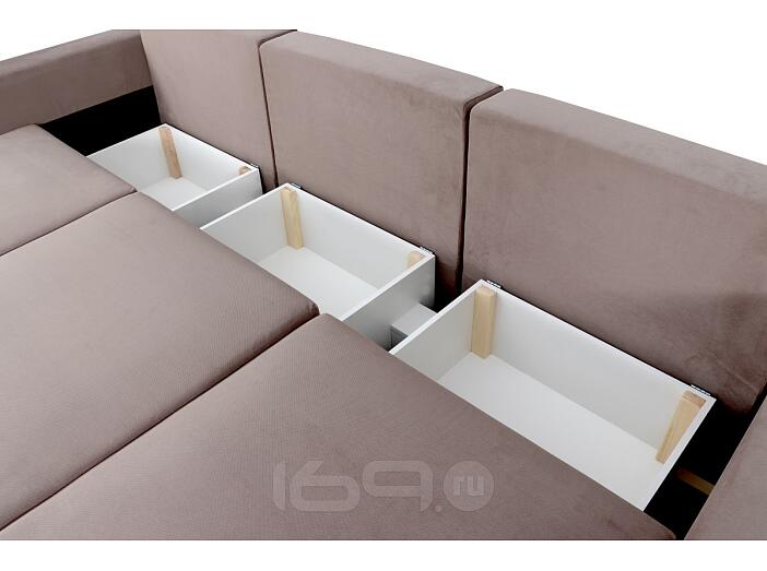 В зависимости от предназначения и типа дивана мебель может снабжаться одним или двумя ящиками для белья. Механизм выдвижения может работать как вперед, так и по бокам. Ящики в диване добавляют места для хранения. Особенно актуально это в небольших помещениях, где нет многочисленных шкафов.