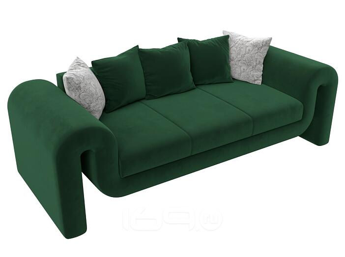 Диван прямой волна зеленый/серый без механизма