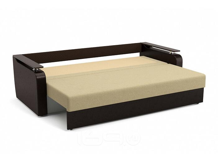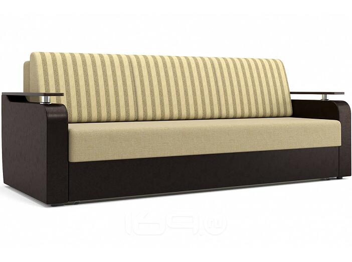 Просторный классический диван в эффектном сочетании искусственной кожи и рогожки украсит традиционную гостиную и будет комфортным местом отдыха всей семьи. Модель Кармен выполняется в контрастных цветах, подушки спинки – из ткани-компаньона с орнаментом. Безопасные скругленные подлокотники дополнены вставками на металлических опорах, выполняющими роль столешниц. Диван подходит для ежедневного сна благодаря проверенному механизму трансформации «Еврокнижка».