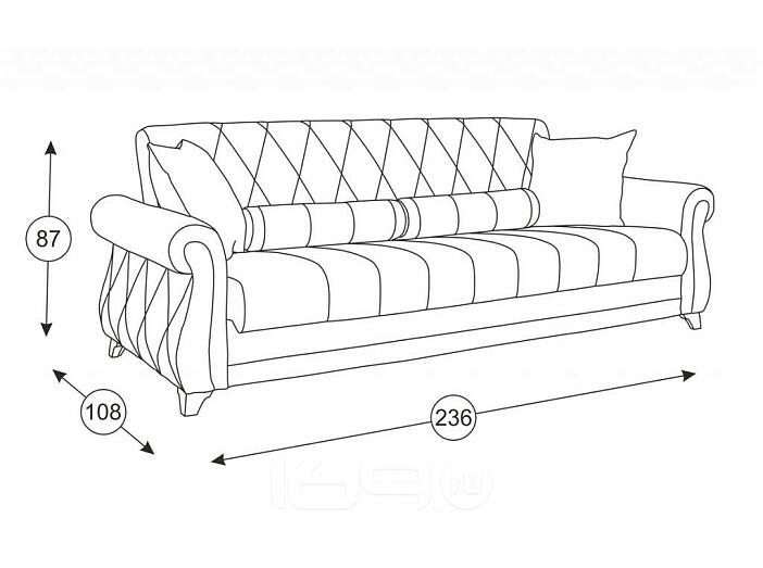 Декоративная отстрочка на диванной части. Защипы и кант на подлокотниках и подушках-валиках.