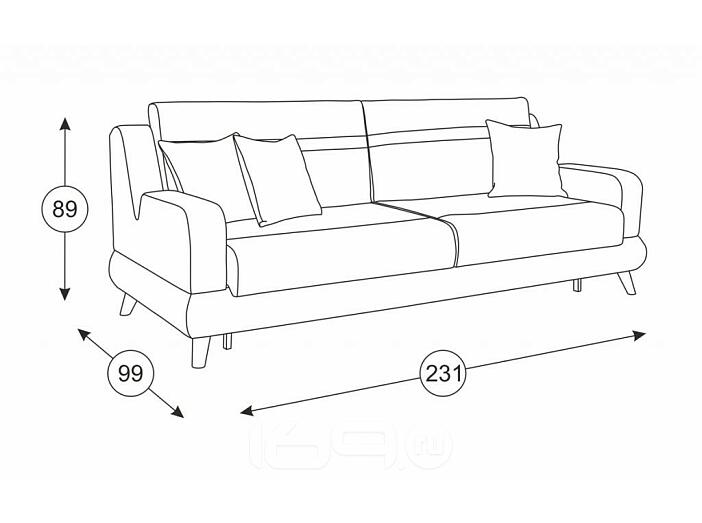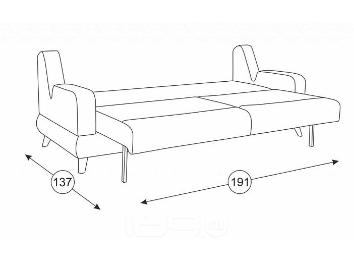 Декоративные вставки на сиденье и приспинных подушках, декоративный кант на подлокотниках. Есть короб для постельных принадлежностей.