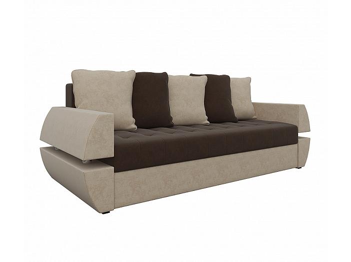 Диван прямой Атлант Т Микровельвет Коричневый Бежевый Еврокнижка
