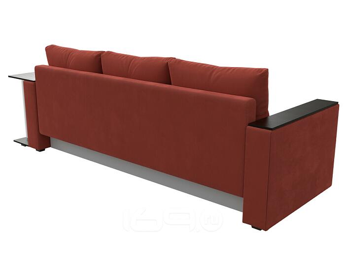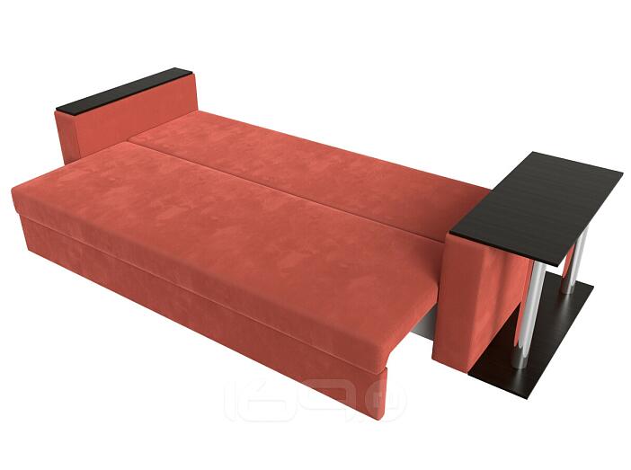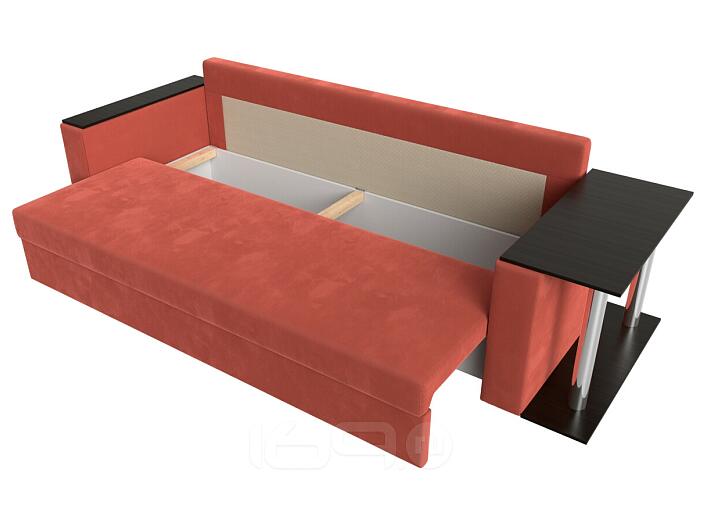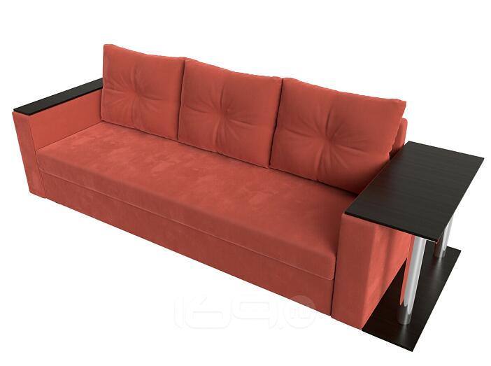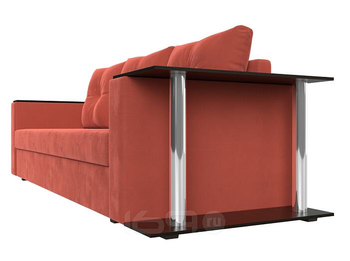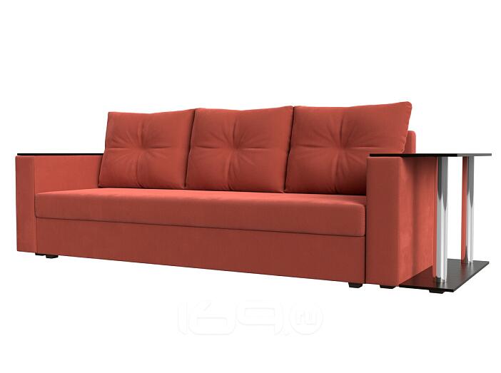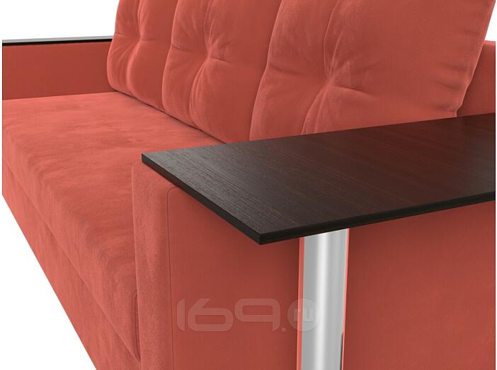 Прямой диван Атланта Лайт микровельвет коралловый столик справа Еврокнижка
