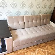 Прямой диван Атлантида со столом выглядит оригинально, при этом функционален в использовании. В считанные минуты, его можно трансформировать в удобную двуспальную кровать. Вместительный ящик для белья под сиденьем обеспечит дополнительное место для хранения.