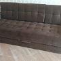 Диван прямой Атлантида Микровельвет Коричневый стол слева Еврокнижка