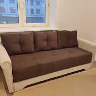 Компактный прямой диван Европа выполнен в популярном классическом дизайне. Выбор расцветок данной модели огромен, каждый сможет подобрать идеальный вариант под интерьер своей гостиной. Спинка модели дополнена тремя мягкими подушками, под сиденьем находится вместительные бельевые ящики.