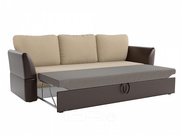 Диван прямой Гесен Рогожка Бежевый Экокожа Коричневый Дельфин