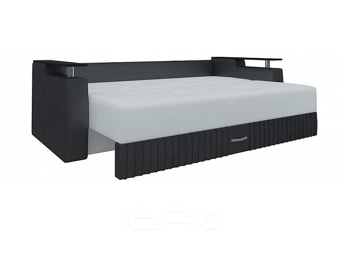Диван прямой Лотос экокожа Белый Чёрный Еврокнижка