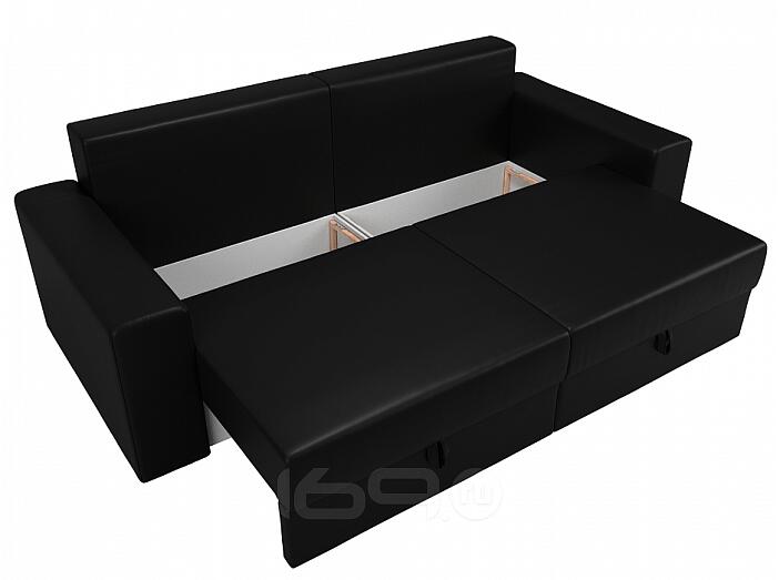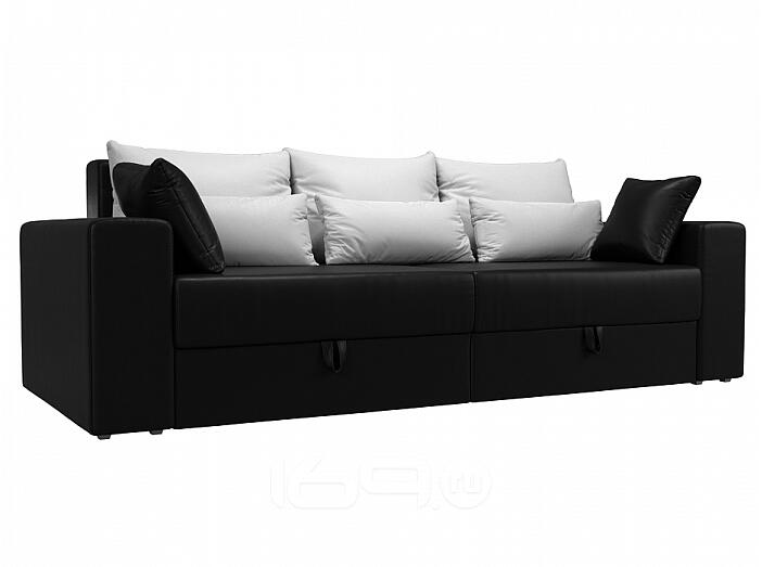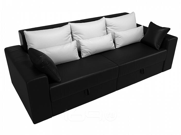 Диван прямой Мэдисон Экокожа Черный с белыми подушками Еврокнижка
