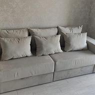 Механизм раскладки: еврокнижка. Разложить прямой диван можно выдвинув вперед элементы сиденья и сложив спинки в нишу. Система состоит из надежных кронштейнов, стальных направляющих и роликов.