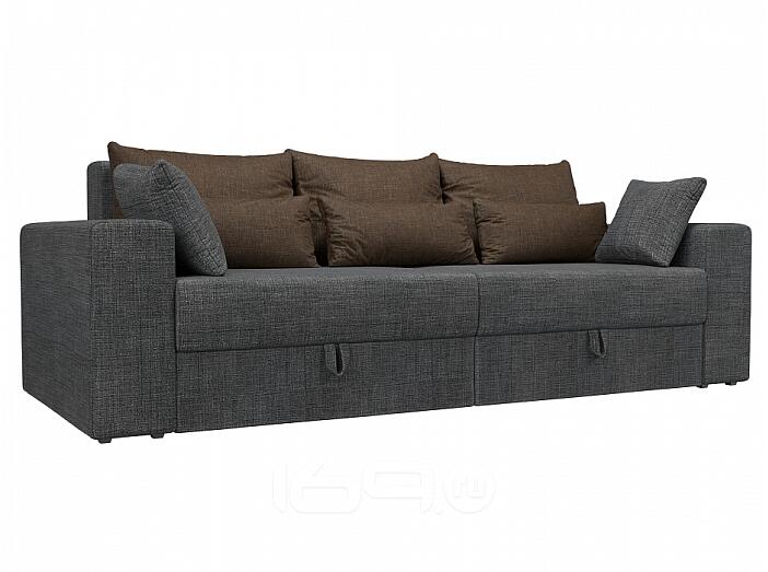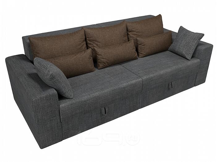 Диван прямой Майами Рогожка Серый с коричневыми подушками Еврокнижка