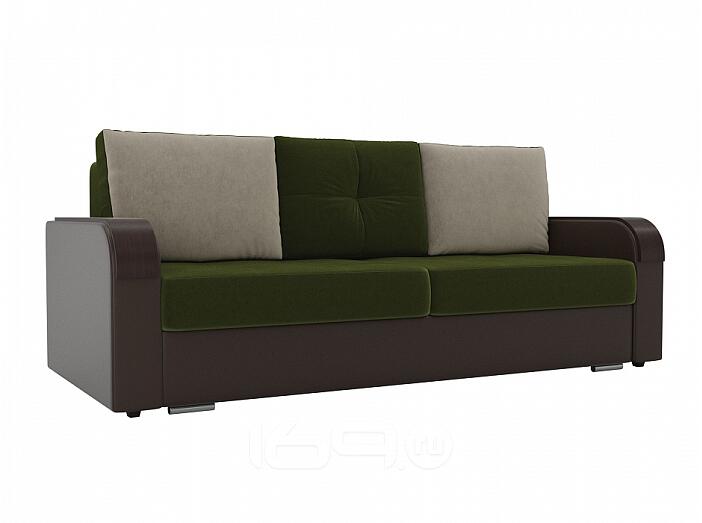 Диван прямой Мейсон Микровельвет Зеленый Коричневый Еврокнижка