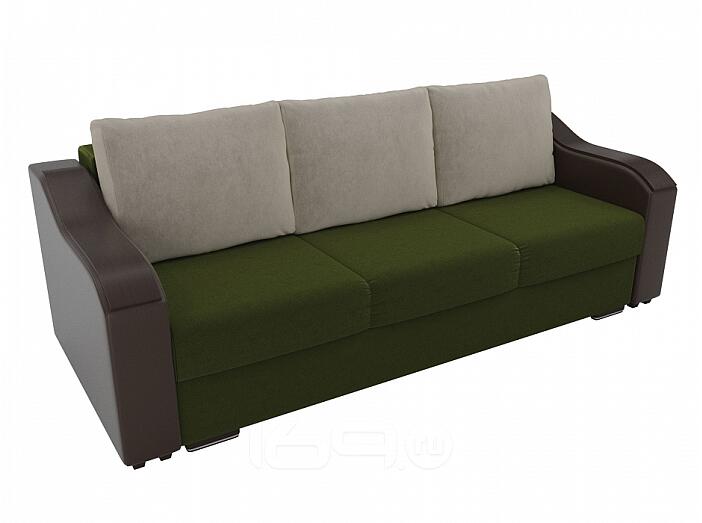 Диван прямой Монако Микровельвет Зеленый Коричневый Еврокнижка