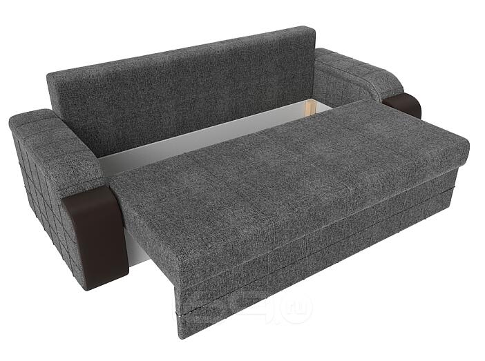 Диван прямой Николь Рогожка Серый Экокожа Коричневый Еврокнижка