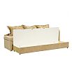 Диван с таким механизмом нужно потянуть за нижнюю часть для выдвижения потайной секции. Дальнейшее выдвижение секции создает уже полноценное спальное место.