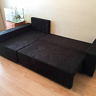 Угловой диван Маркиз – минималистичная модель для современных квартир-студий. Уютный большой диван с обивкой из велюра может одновременно вместить всю семью, собравшуюся по поводу торжества или просто для вечернего чая. Модель оснащена удобными широкими подлокотниками и большими мягкими подушками под спину. С помощью механизма «еврокнижка» удобный диван превращается в комфортабельное двухместное ложе. Под ним имеется ящик для хранения постельных аксессуаров. Цветовое решение можно подобрать с помощью нашего богатого каталога.