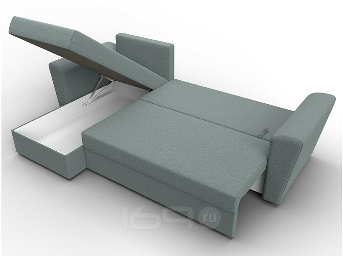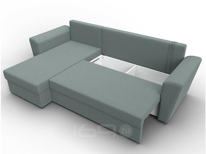 Угловой диван с расположением угла с левой стороны. Внешне напоминает английскую букву L. Механизм трансформации находится в длинной стороне. Модель занимает две стены, можно использовать для зонирования пространства.