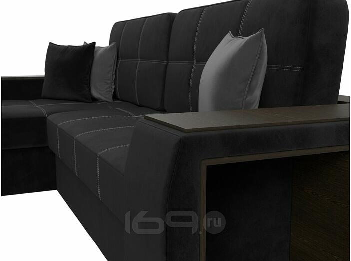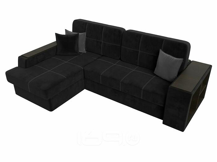 Диван угловой брюссель велюр левый угол черный/серый дельфин