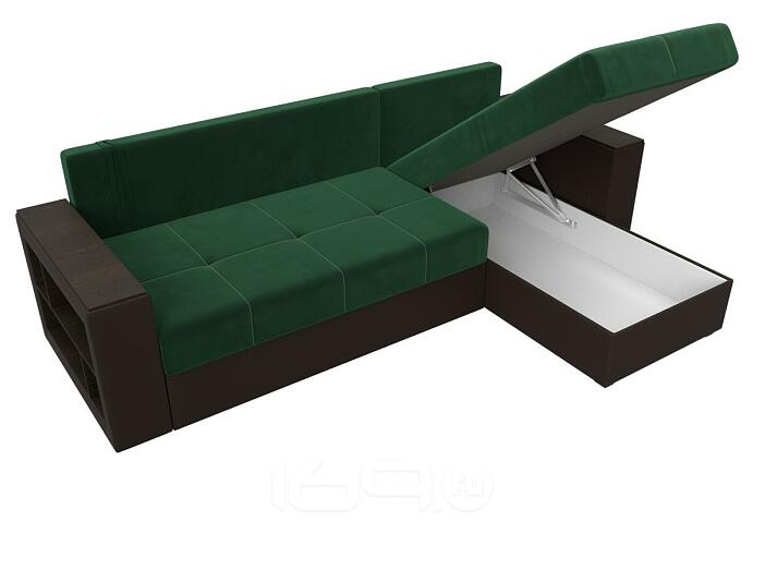 Диван угловой дубай лайт угол универсальный зеленый/коричневый еврокнижка