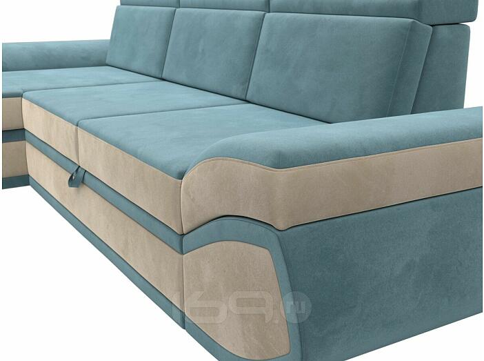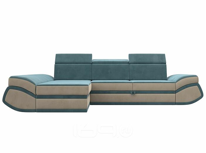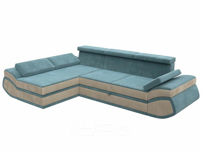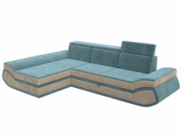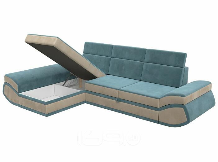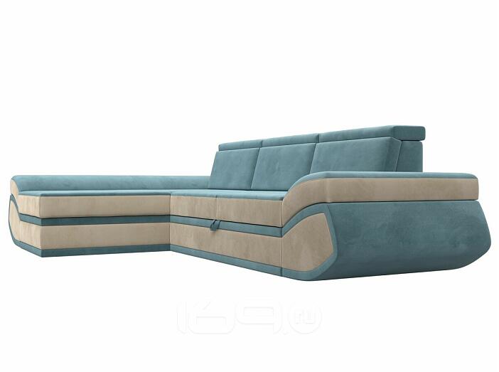 Диван угловой лига-032 левый угол seven 113 бирюзовый/seven 729 бежевый дельфин