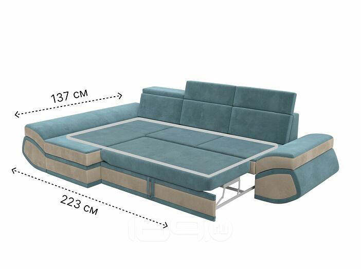 Угловой диван с расположением угла с левой стороны. Внешне напоминает английскую букву L. Механизм трансформации находится в длинной стороне. Модель занимает две стены, можно использовать для зонирования пространства.