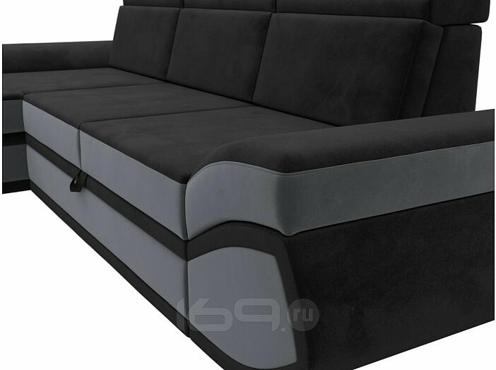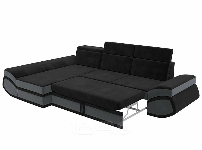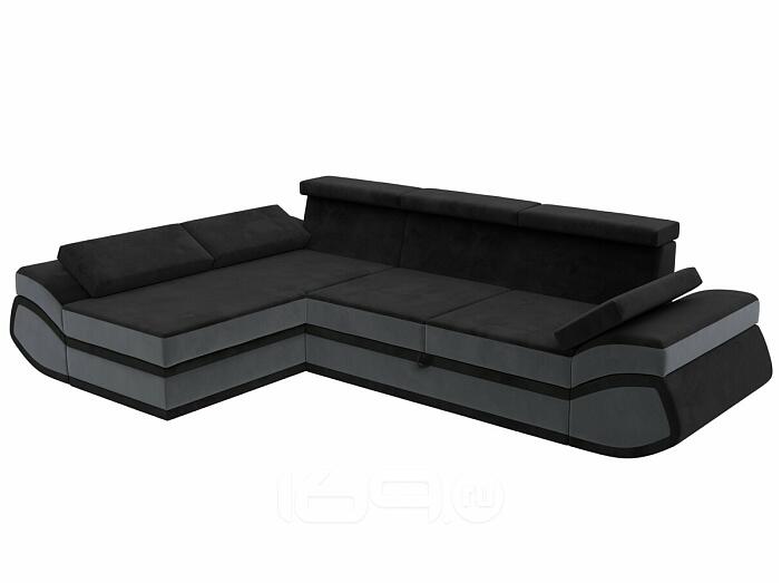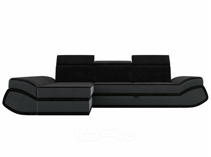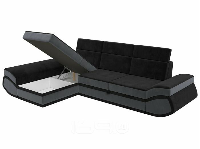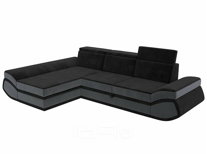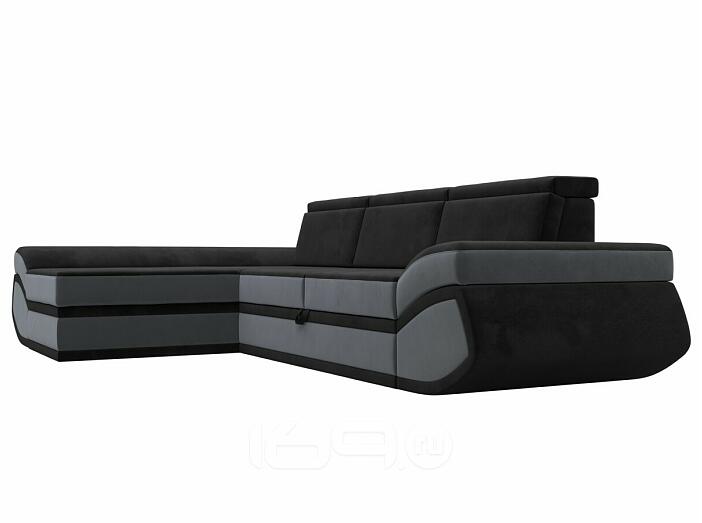 Диван угловой лига велюр-032 левый угол seven 35 черный/seven 17 серый дельфин