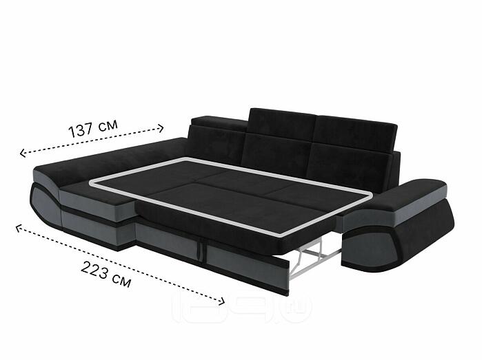 Угловой диван с расположением угла с левой стороны. Внешне напоминает английскую букву L. Механизм трансформации находится в длинной стороне. Модель занимает две стены, можно использовать для зонирования пространства.