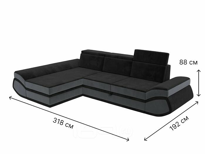 Диван угловой лига-032 велюр левый угол seven 35 черный/seven 17 серый дельфин