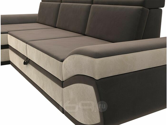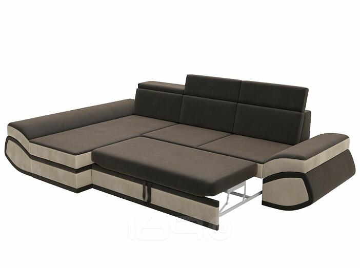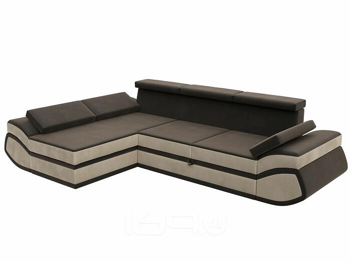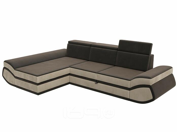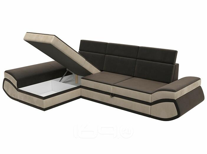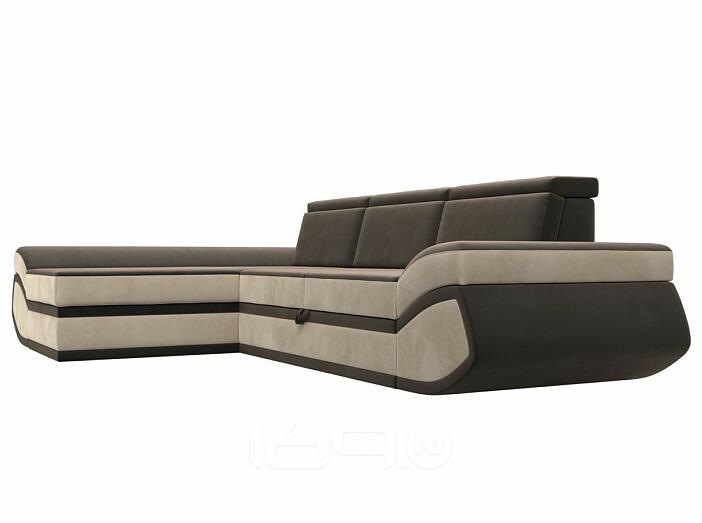 Диван угловой лига велюр-032 левый угол seven 727 коричневый/seven 729 бежевый дельфин