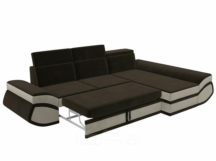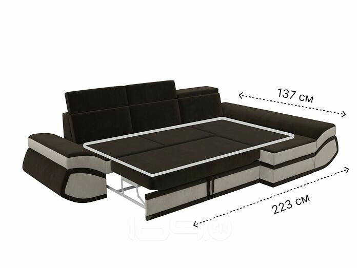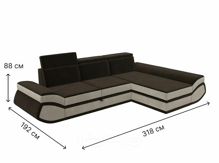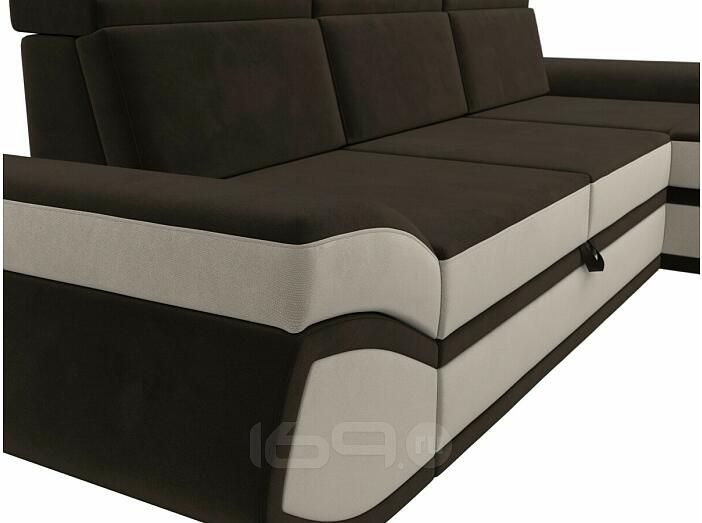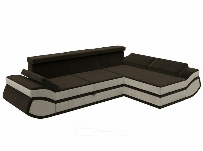 Диван угловой лига микровельвет-032 правый угол коричневый/бежевый дельфин