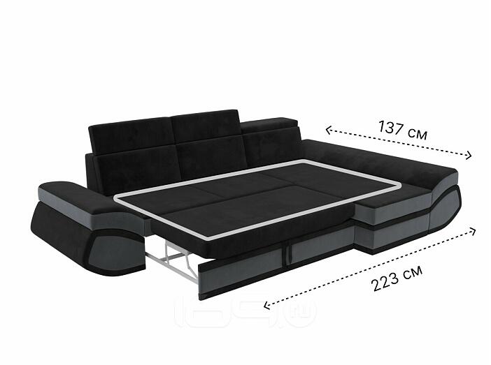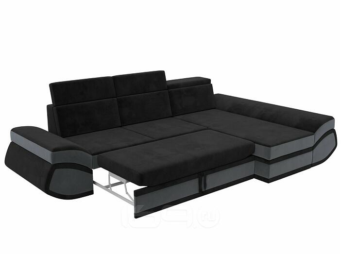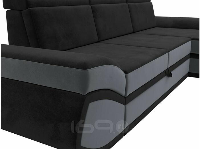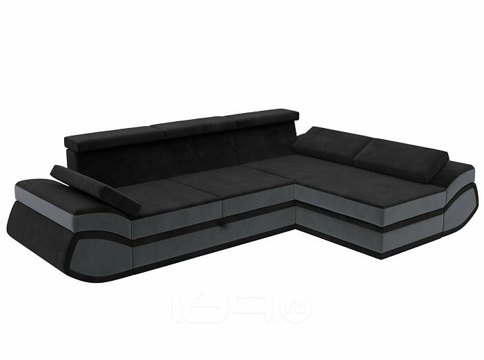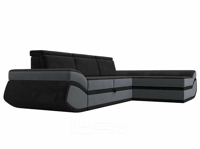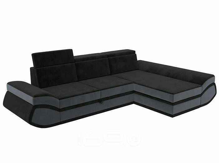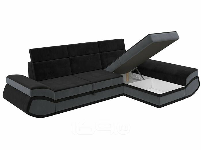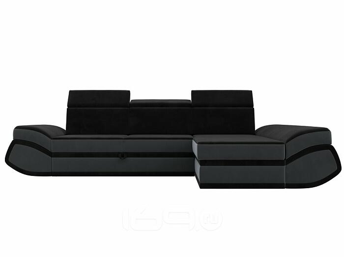 Диван угловой лига велюр-032 правый угол seven 35 черный/seven 17 серый дельфин