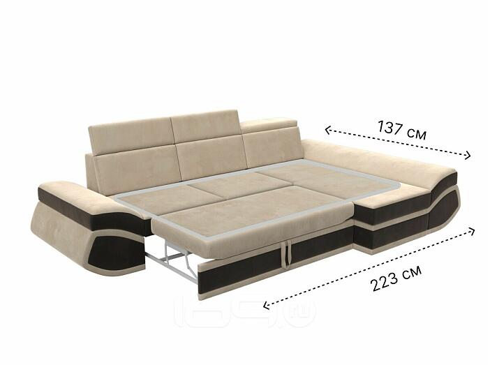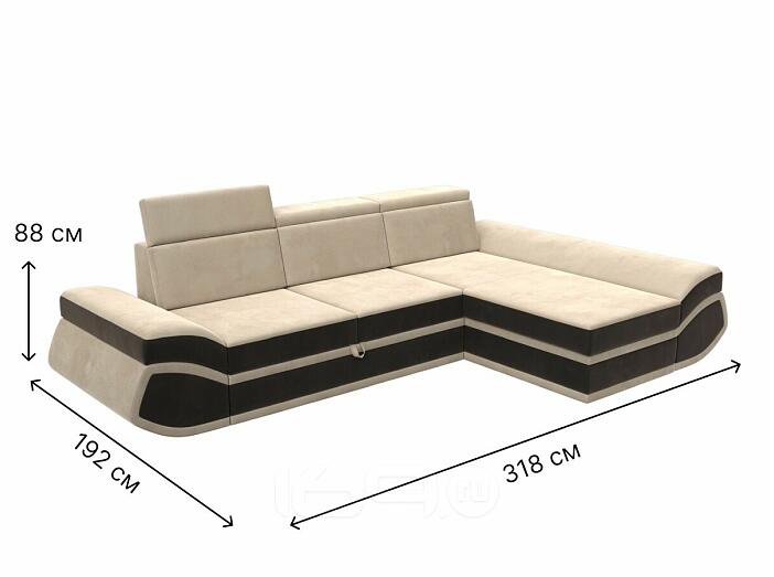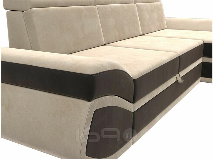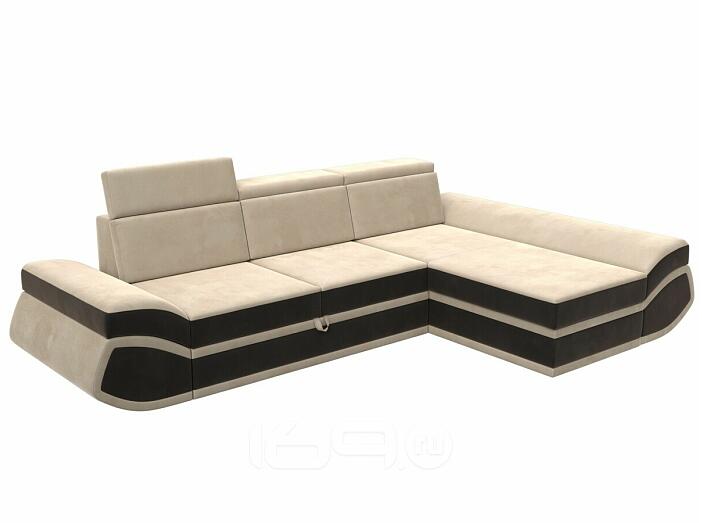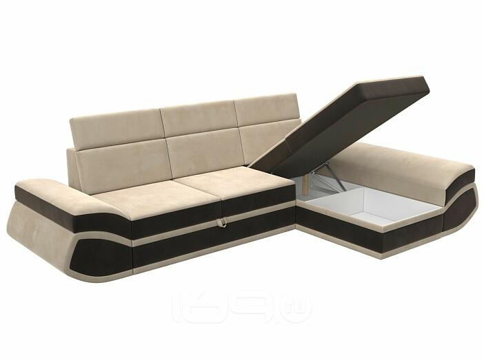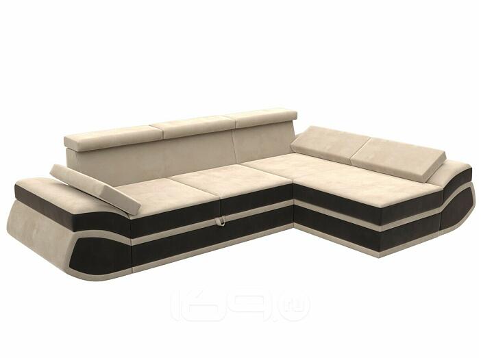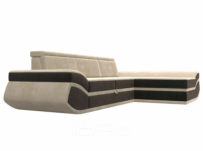 Диван угловой лига велюр-032 правый угол seven 729 бежевый/seven 727 коричневый дельфин
