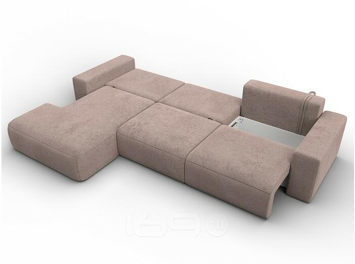 Угловой диван с расположением угла с левой стороны. Внешне напоминает английскую букву L. Механизм трансформации находится в длинной стороне. Модель занимает две стены, можно использовать для зонирования пространства.