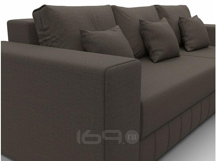 Оснащен мягким подлокотником и съемными подушками.