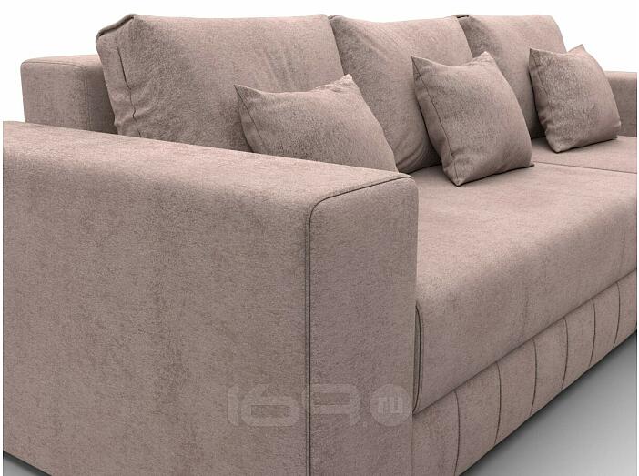 Оснащен мягким подлокотником и съемными подушками.