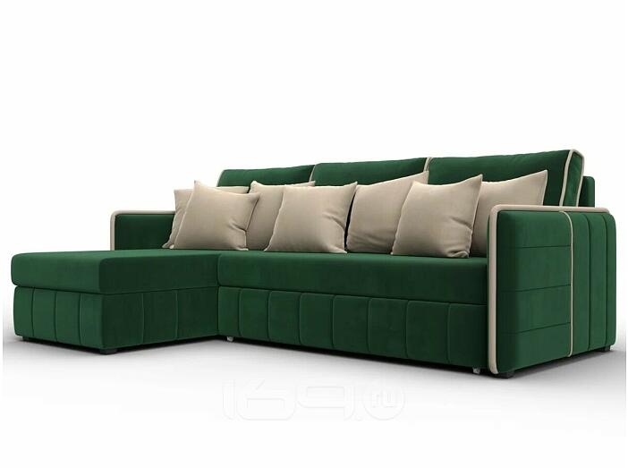 Диван угловой лига-078 угол левый seven 626 зеленый/seven 729 бежевый дельфин