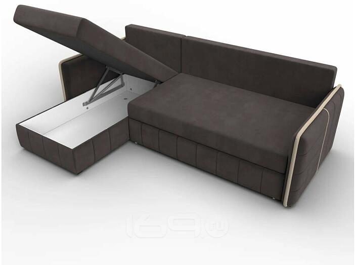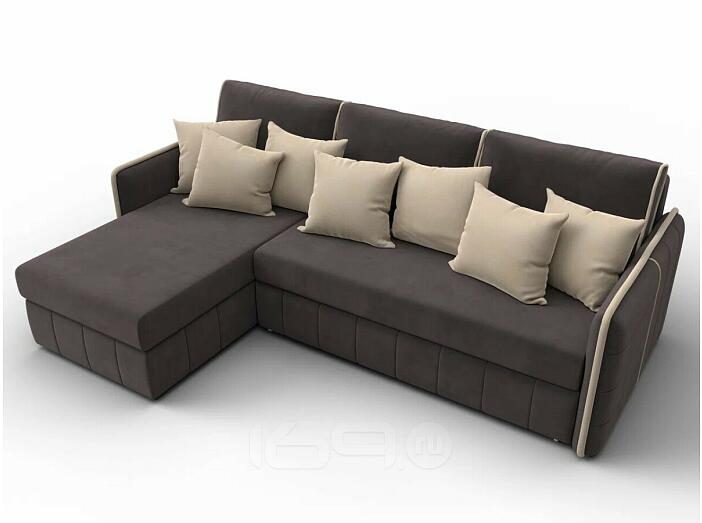 Угловой диван с расположением угла с левой стороны. Внешне напоминает английскую букву L. Механизм трансформации находится в длинной стороне. Модель занимает две стены, можно использовать для зонирования пространства.