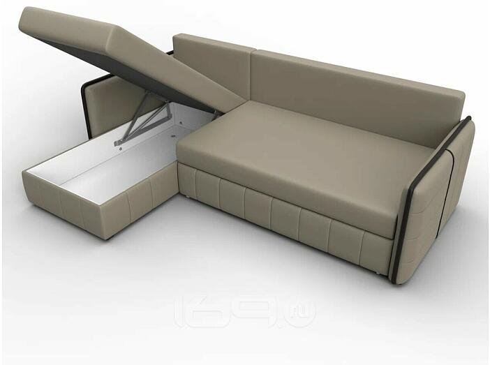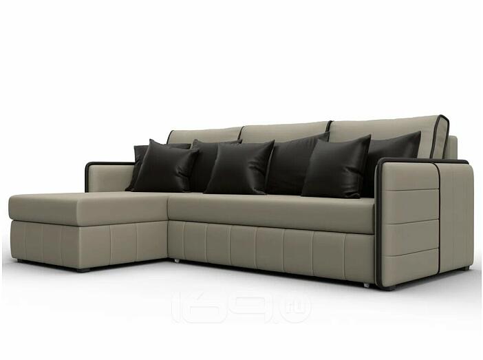 Угловой диван с расположением угла с левой стороны. Внешне напоминает английскую букву L. Механизм трансформации находится в длинной стороне. Модель занимает две стены, можно использовать для зонирования пространства.