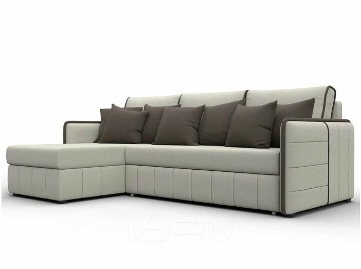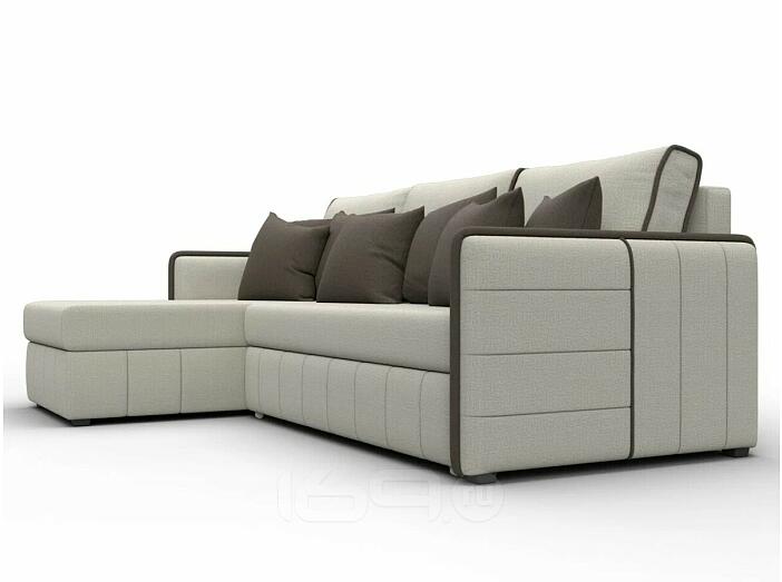 Угловой диван с расположением угла с левой стороны. Внешне напоминает английскую букву L. Механизм трансформации находится в длинной стороне. Модель занимает две стены, можно использовать для зонирования пространства.