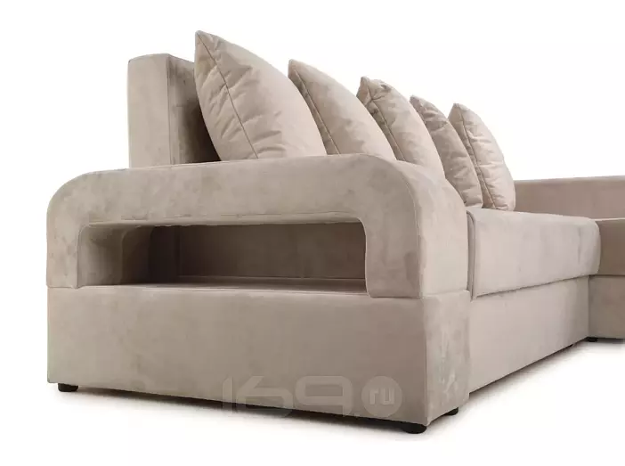 Модель углового дивана с расположением угла справа. Внешне напоминает русскую букву Г. При выборе учитывайте, что угол устанавливается стационарно, переделать его нельзя, поэтому нужно заранее продумать, как диван будет располагаться.