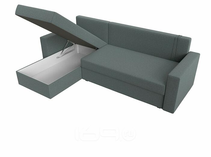 Угловой диван с расположением угла с левой стороны. Внешне напоминает английскую букву L. Механизм трансформации находится в длинной стороне. Модель занимает две стены, можно использовать для зонирования пространства.