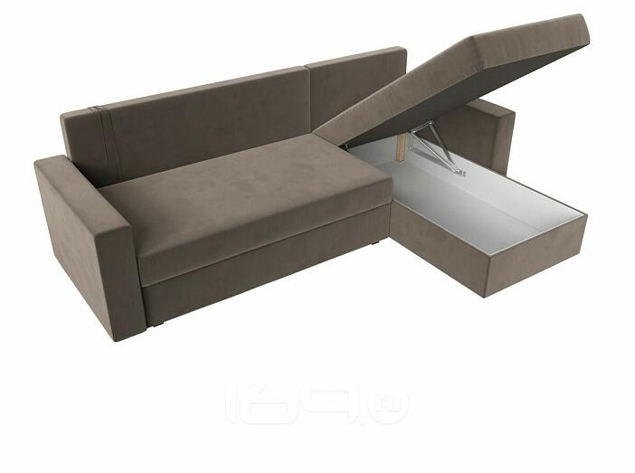 Диван угловой траумберг лайт правый велюр коричневый еврокнижка