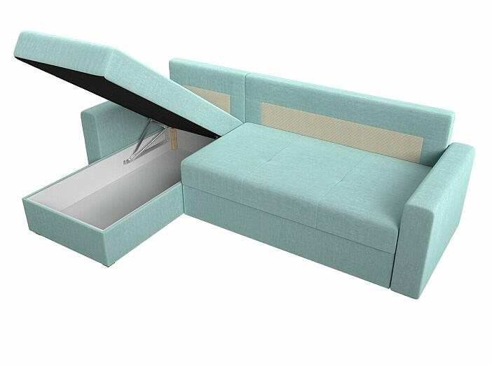 Угловой диван с расположением угла с левой стороны. Внешне напоминает английскую букву L. Механизм трансформации находится в длинной стороне. Модель занимает две стены, можно использовать для зонирования пространства.