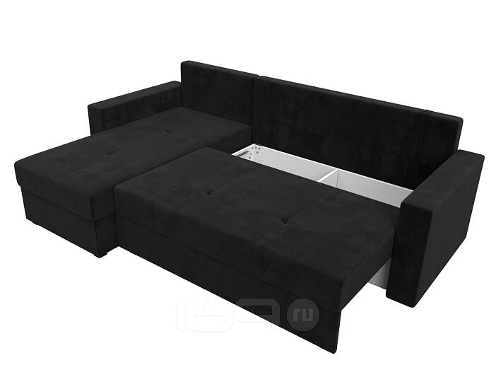 Диван угловой верона лайт левый велюр черный еврокнижка