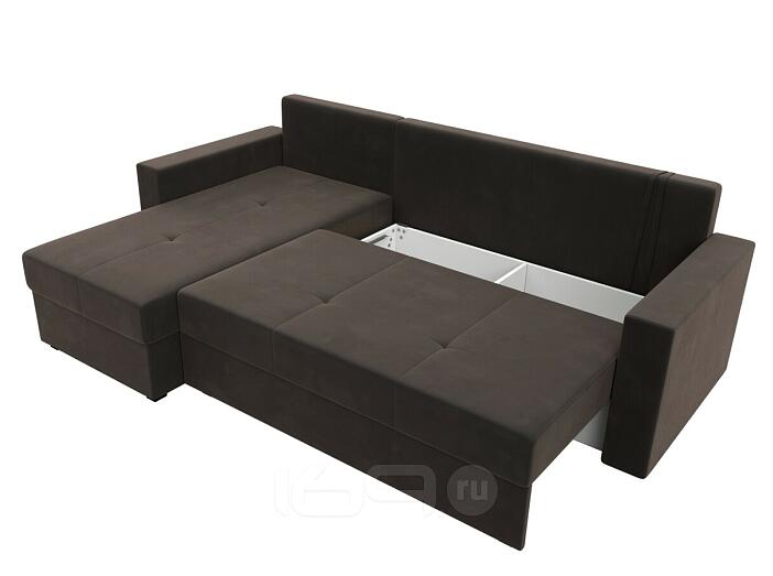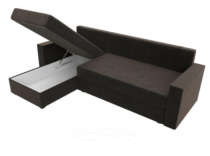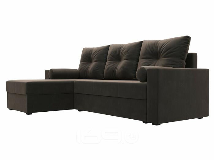 Диван угловой верона лайт левый велюр коричневый еврокнижка