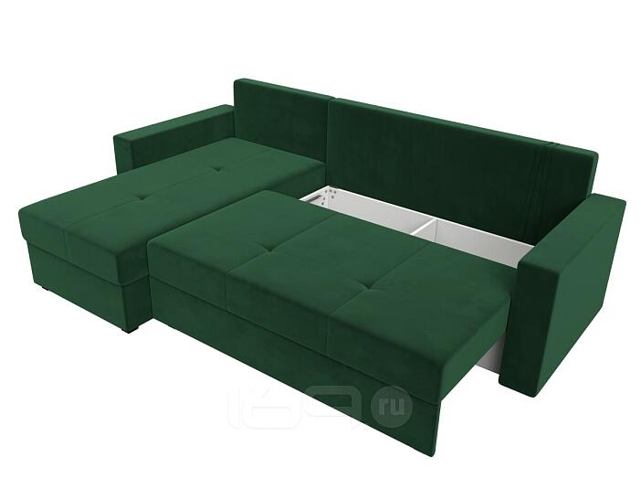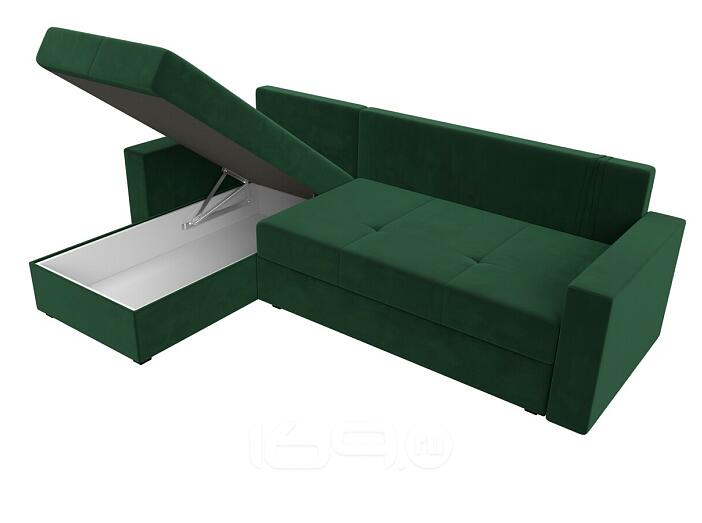 Диван угловой верона лайт левый велюр зеленый еврокнижка
