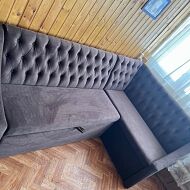 Обивка: рогожка, экокожа или микровельвет. Выбор ткани зависит от цвета углового дивана и предпочтений покупателя. Материи обладают хорошим качеством, гипоаллергенные и прочные. Они не протираются, сохраняя первозданный вид на долгие года.