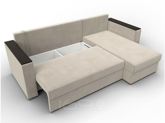 Модель углового дивана с расположением угла справа. Внешне напоминает русскую букву Г. При выборе учитывайте, что угол устанавливается стационарно, переделать его нельзя, поэтому нужно заранее продумать, как диван будет располагаться.